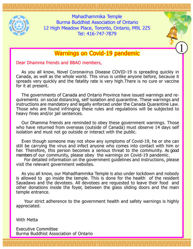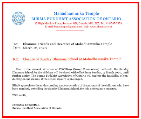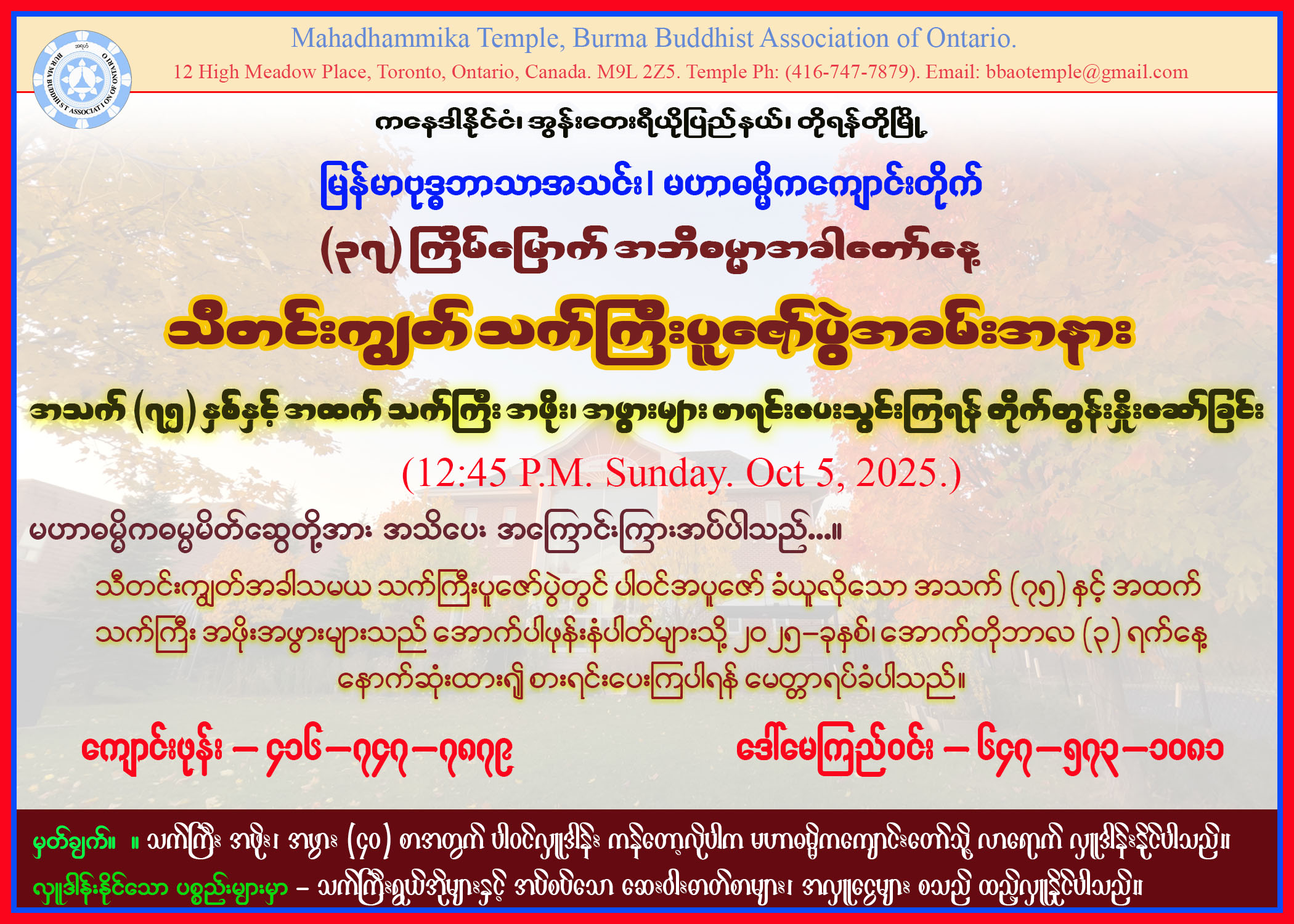 Venue: Mahadhammika Temple, 12 High Meadow Place, North York, Toronto, ON M9L 2Z5
