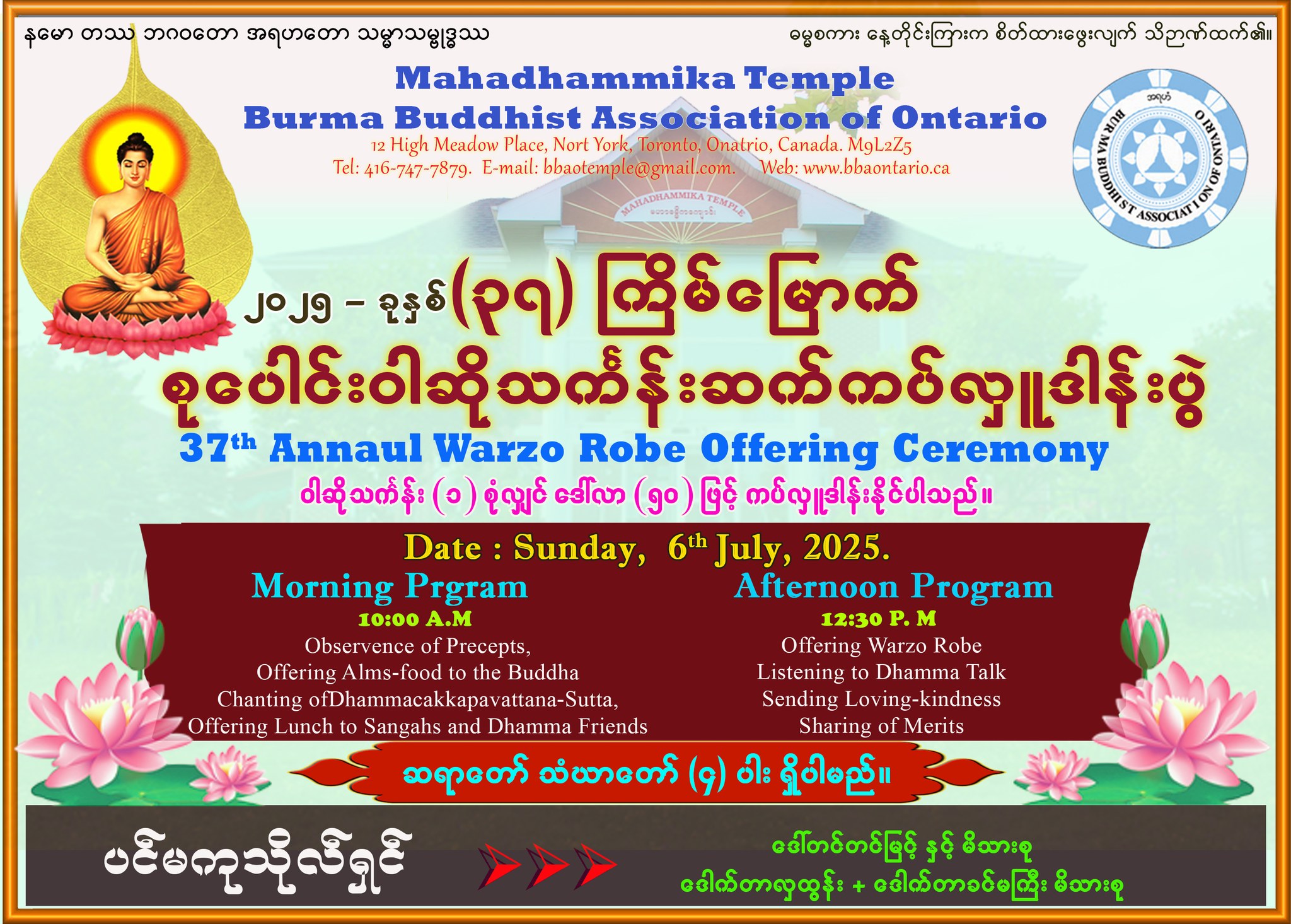An Invitation to the 37th Kathina Robe Offering Ceremony. Please find below flyer and invitation for the details